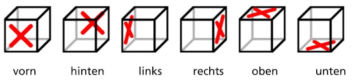 Ihre Aufgabe besteht darin, sich einen Würfel vorzustellen, der auf einer Seite mit einem Kreuz markiert ist.