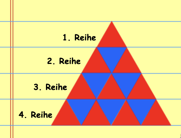 Wie gross ist der prozentuale Anteil an blauen Dreiecken in den ersten vier Reihen?